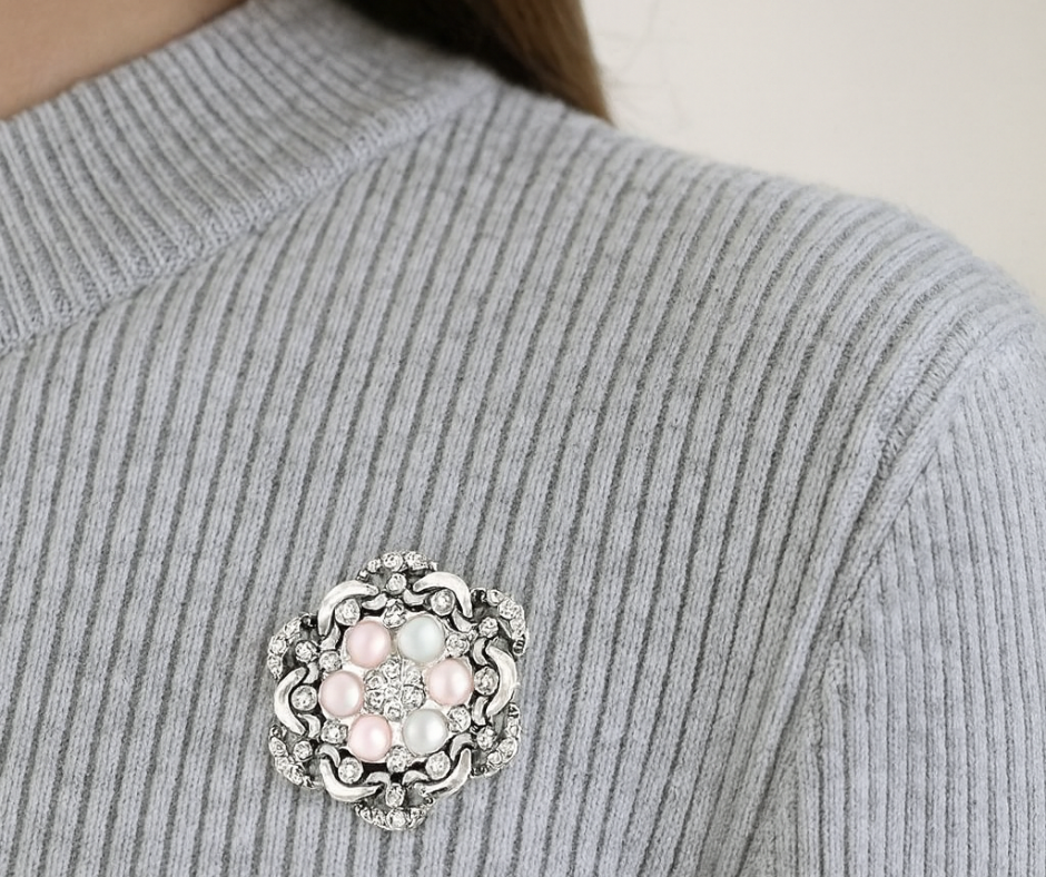Accent your favorite clothing, jackets, purses or other accessories by snapping your favorite gems into this brooch.