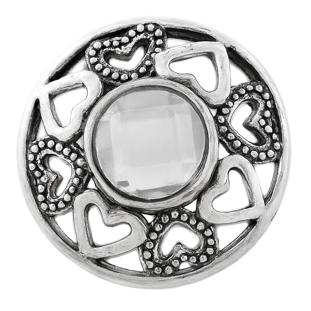 A soft pink background highlights a silver heart framed by graceful angel wings โ a delicate, symbolic snap that adds a touch of love and protection to your jewelry.