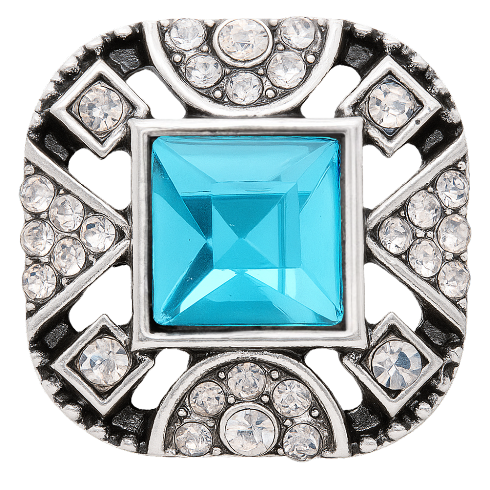 A bold square aqua gemstone sits at the center of this intricate silver design, accented with shimmering crystals for a refined, vintage-inspired sparkle.