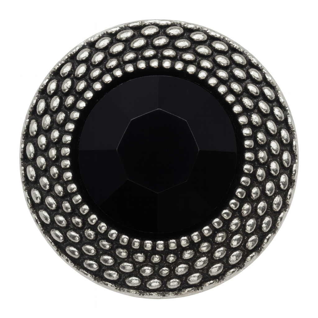 A deep black faceted center gem framed by textured antique-silver dots โ bold, sleek, and perfect for adding a touch of modern edge to any snap jewelry piece.