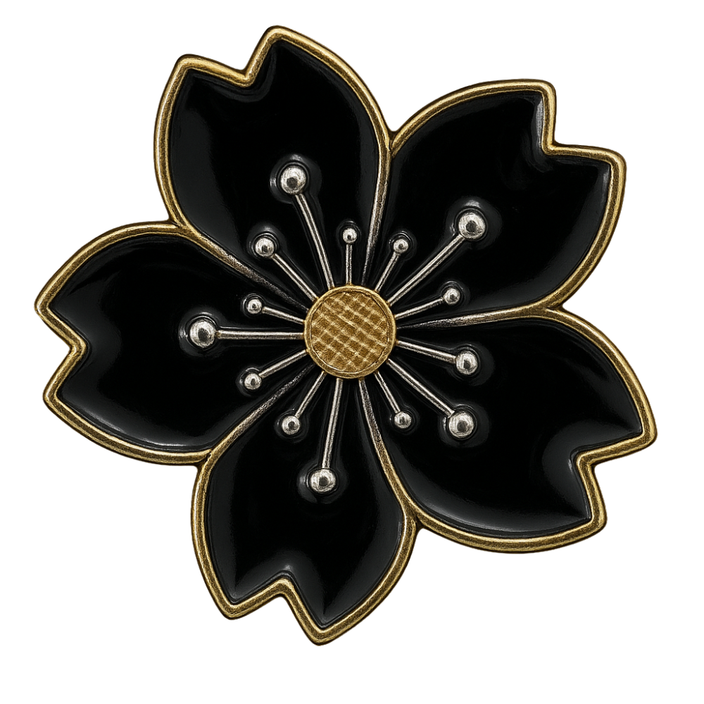 A striking black enamel flower accented with delicate silver details and a textured gold-tone center. Bold, elegant, and perfect for adding a touch of modern floral style to your snap jewelry. Measures 30mm across (fits all regular snap bases).