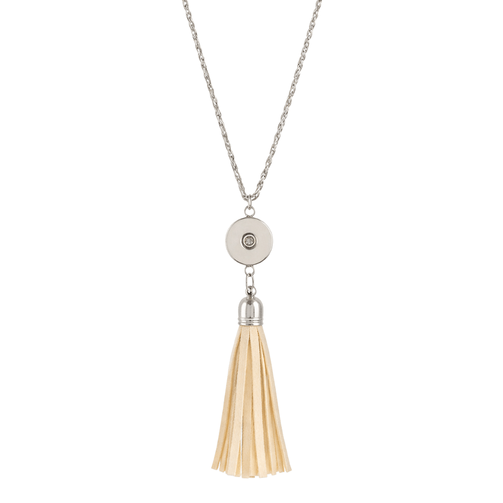 Add some flair to your outfit with this black tassel snap necklaceโstylish, bold, and perfect for any snap charm. Includes 31″ chain.