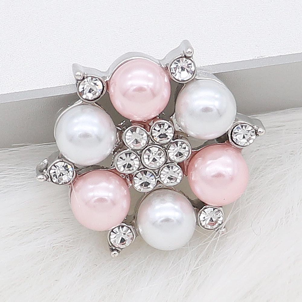 Soft pink and white pearls form a delicate snowflake design accented with clear crystals โ a feminine and graceful snap that sparkles with timeless elegance.