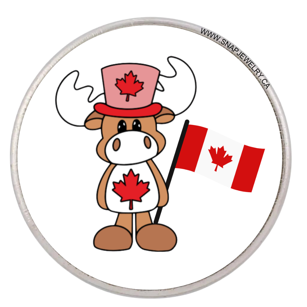 Celebrate Canadian pride with this adorable moose holding the national flag and wearing a maple leaf hatโperfect for Canada Day or year-round patriotism.