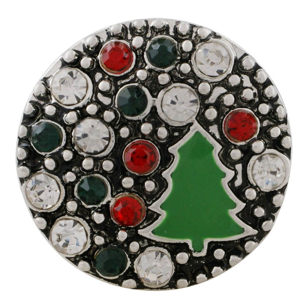 A festive green tree pops at the center of a dazzling burst of red, green, and clear crystalsโperfect for holiday flair.
