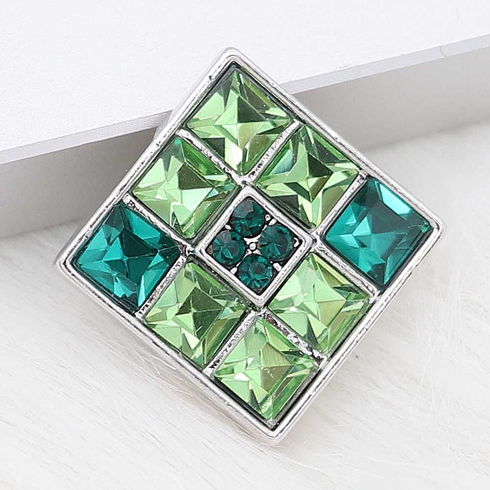 A modern square design featuring a mix of light and dark green crystals for a sleek, geometric sparkle.
