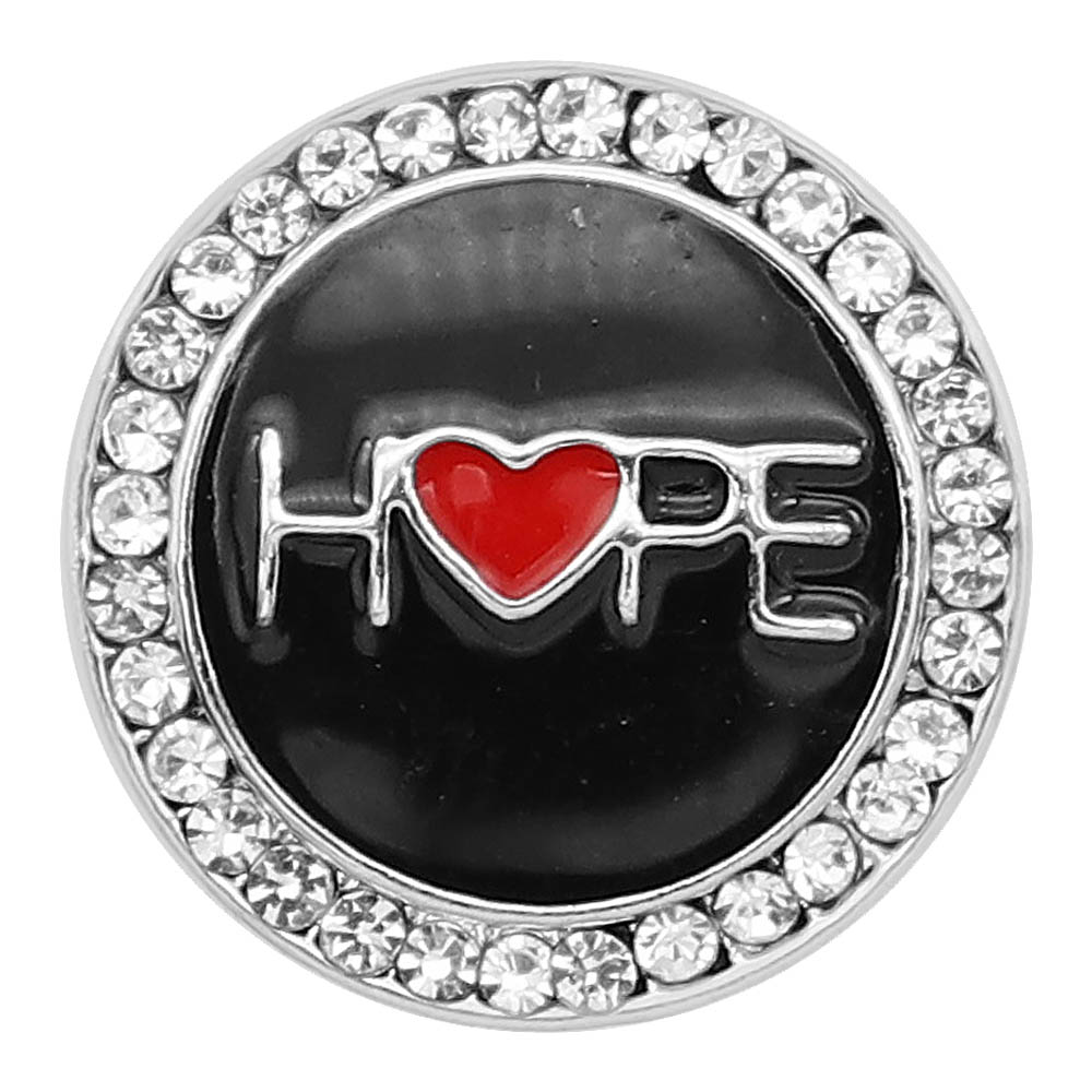 Inspiring โHOPEโ design with a red heart accent and sparkling crystal border on glossy black enamel โ a meaningful snap full of positivity and shine.