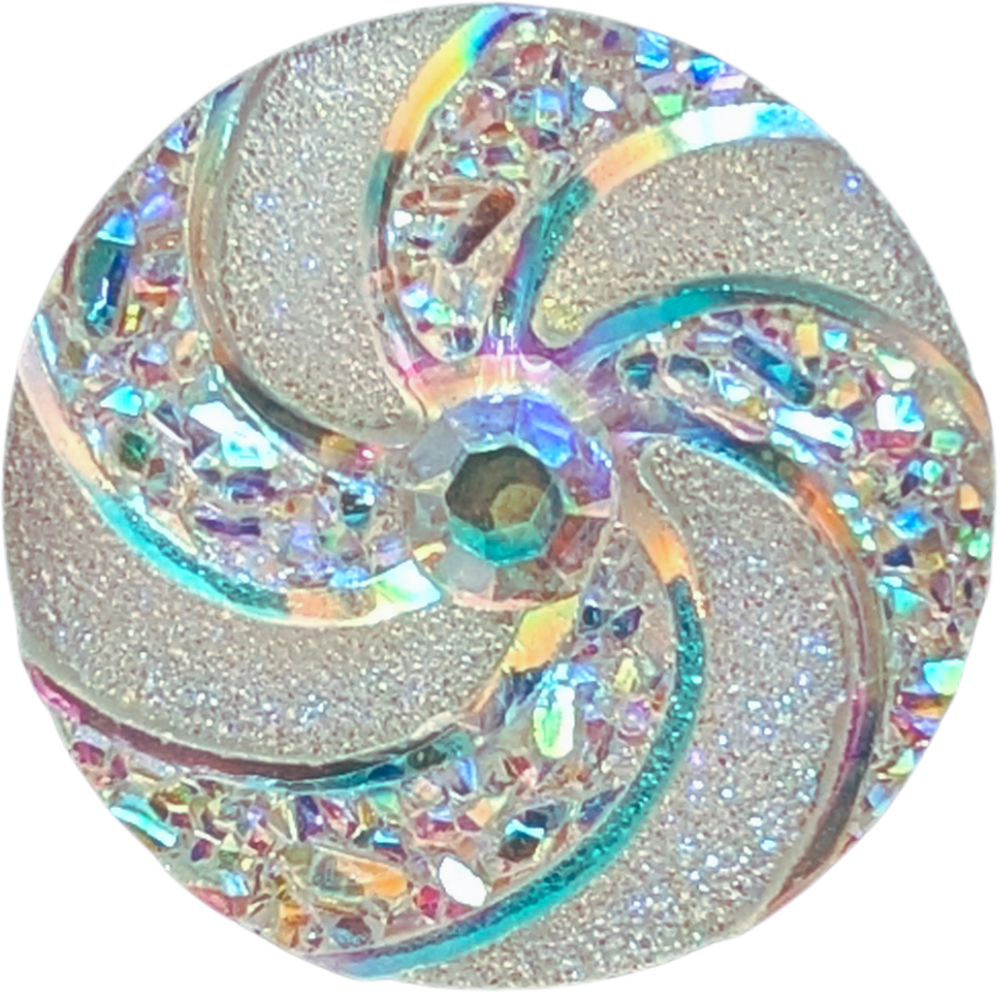 A mesmerizing snap featuring a swirling iridescent pattern that reflects rainbow hues of blue, pink, and violet โ a captivating, light-catching design that adds shimmer to any style.
