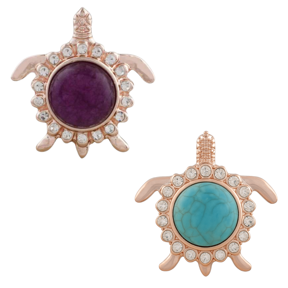 Chic rose gold-tone dangle earrings featuring a sparkling crystal accent and a sleek, polished finish โ ready to pair with your favorite snaps for a personalized touch.