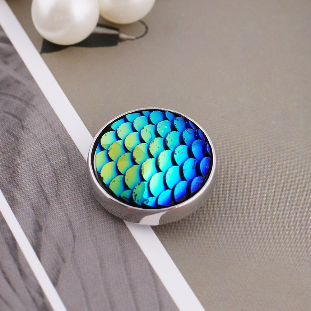 Iridescent blue and gold scales shimmer beautifully in this mermaid-inspired snap, perfect for adding oceanic magic to your look.