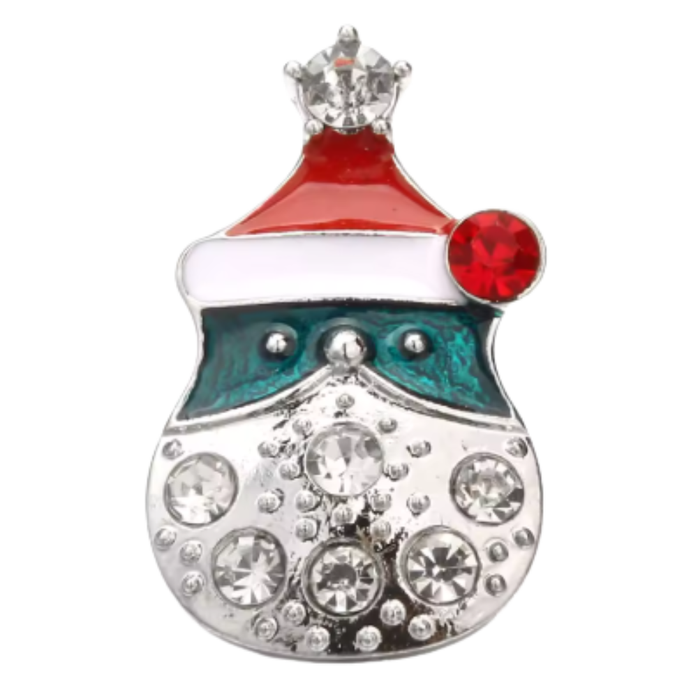 A festive glass dome snap featuring Santa holding a present above a โMerry Christmasโ banner. Bright red and green tones make this cheerful design perfect for holiday jewelry and seasonal accessories.