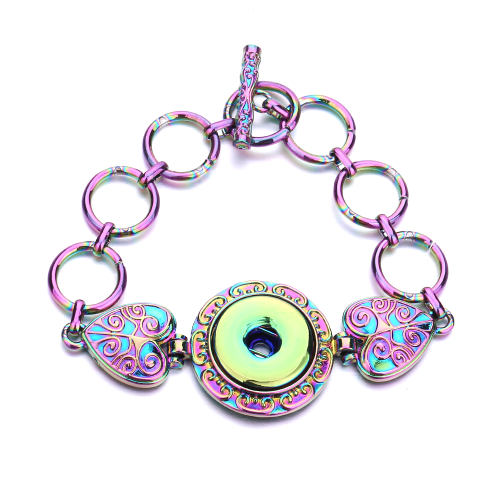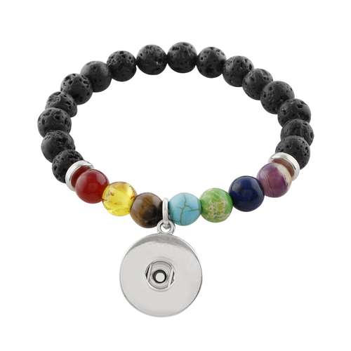 Bring a splash of color to your look with this boho-inspired snap bracelet featuring layered leather textures, rhinestone accents, and bold teal and tangerine patterns. Personalize it with your favorite snap!