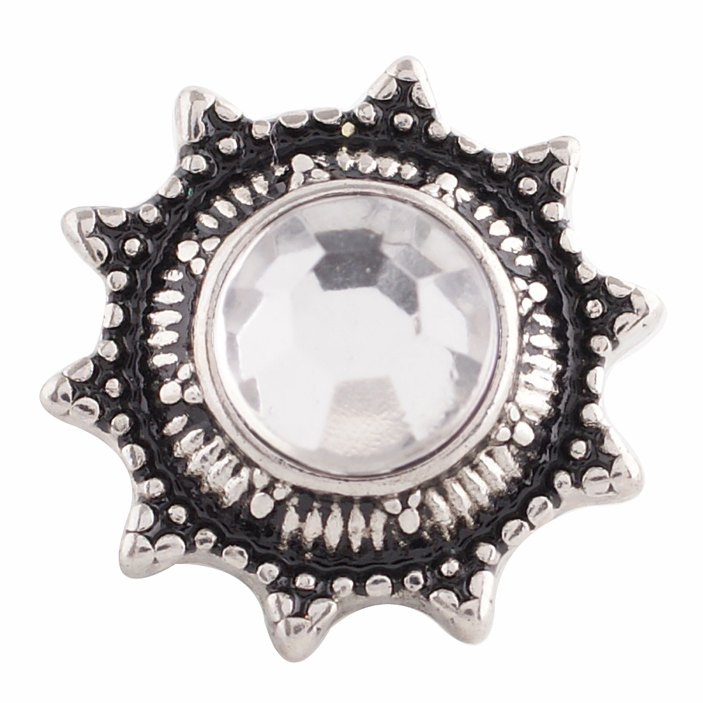 A luminous snap with a brilliant clear crystal center framed by detailed silver beading โ a versatile and eye-catching piece that adds instant sparkle to any look.