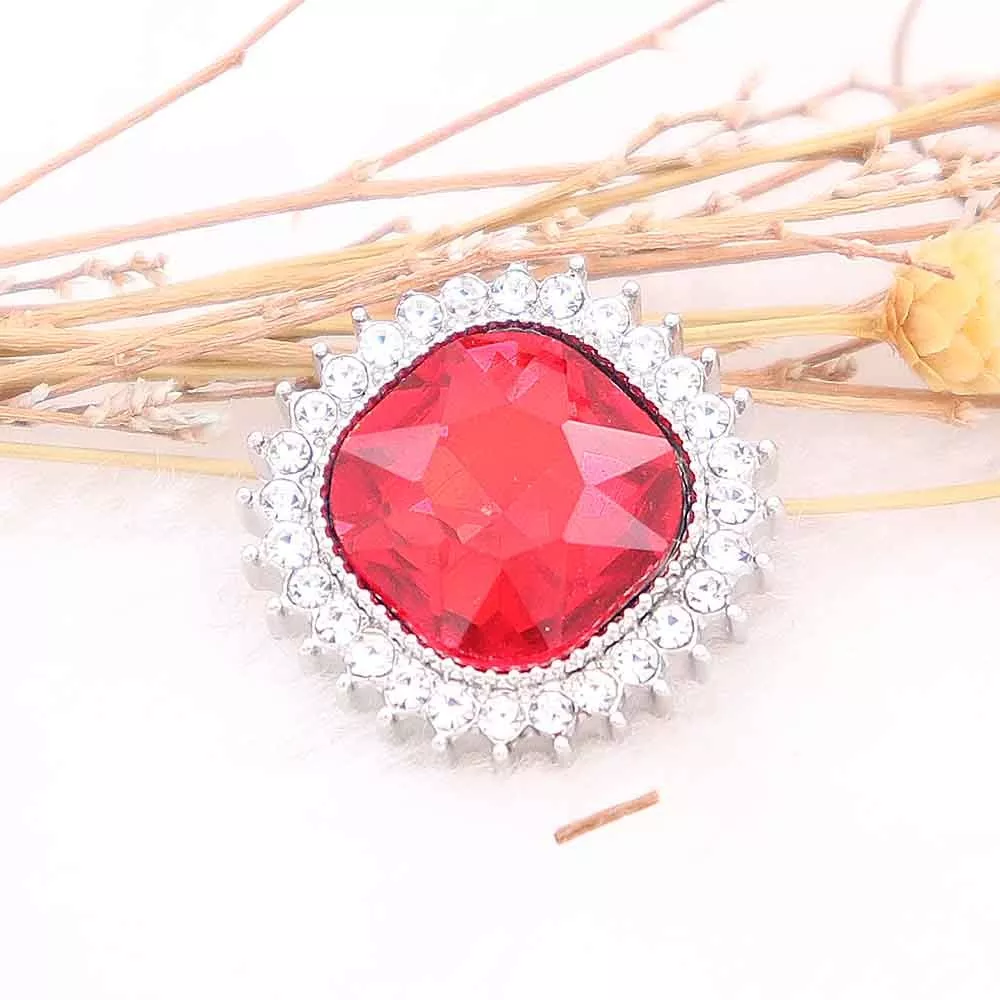 A bold cushion-cut red crystal surrounded by a sparkling halo of clear stones โ this radiant snap adds a touch of elegance and glamour to any jewelry piece.