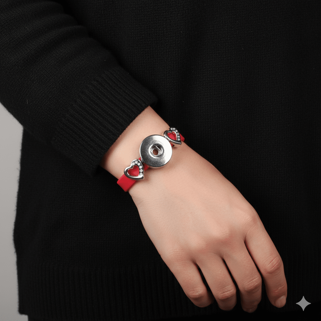 Red Silicone Snap Bracelet with Rhinestone Hearts