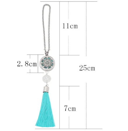 Decorate your rearview mirror with this turquoise tassel charm featuring an essential oil diffuserโstylish and soothing on the go.