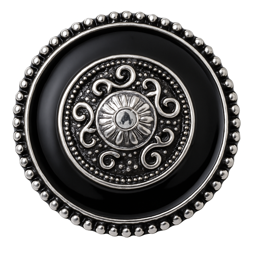 A dazzling medallion design featuring a mix of turquoise stones and sparkling clear crystals, framed in detailed silver for a timeless, elegant look.