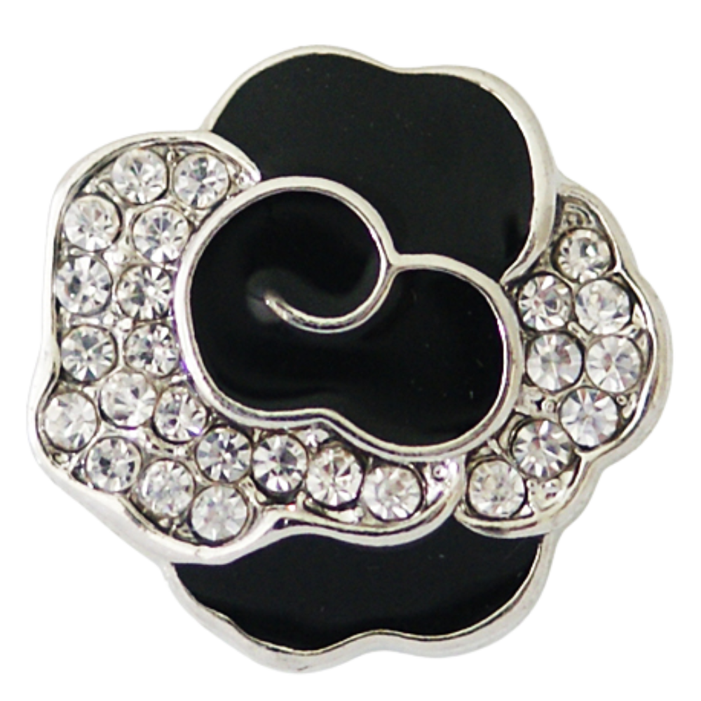 A vivid turquoise crystal framed by silver floral details โ a cheerful blend of color and shine that adds a touch of elegance to any snap jewelry piece.