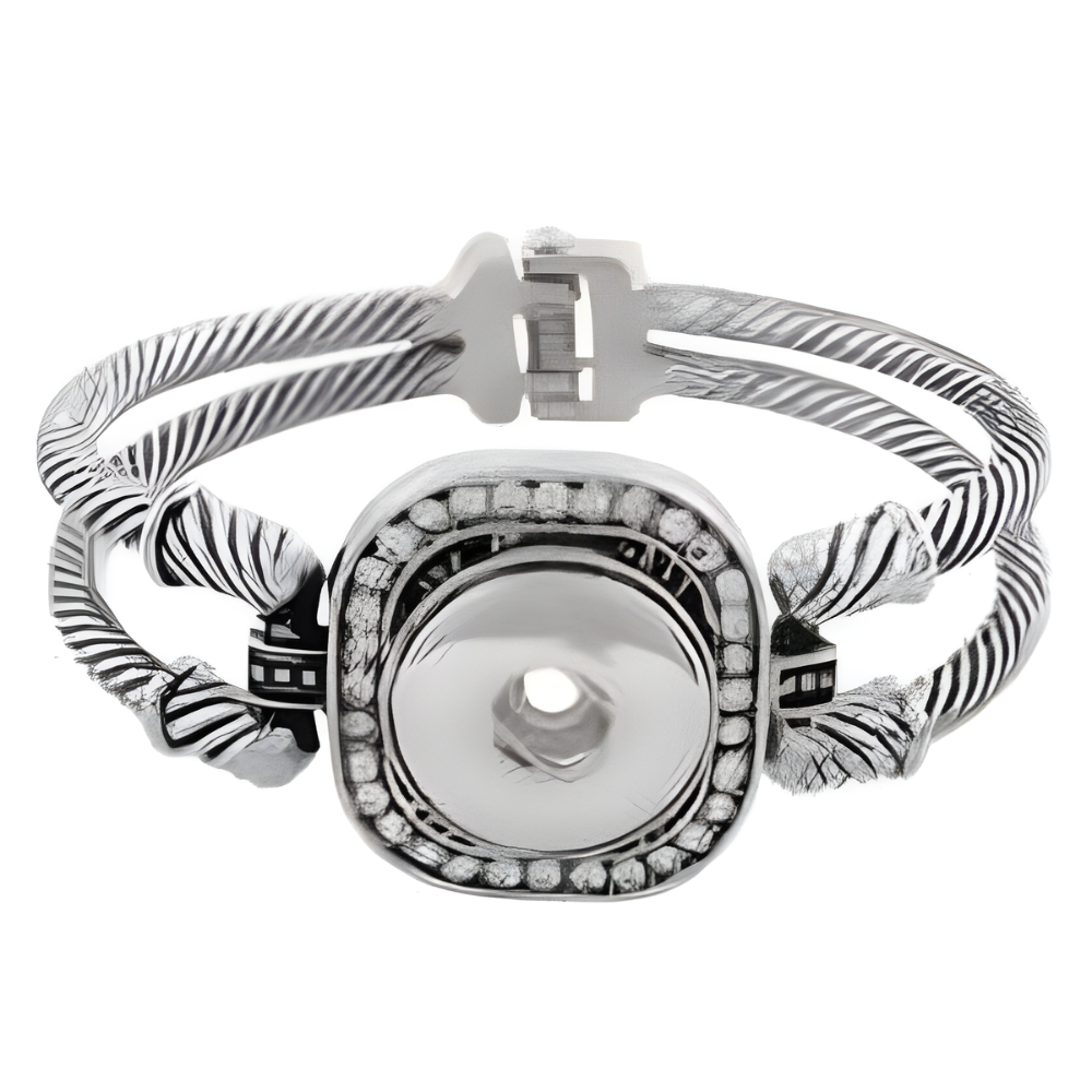 Twisted Cable Snap Bracelet with Rhinestone Square Accent