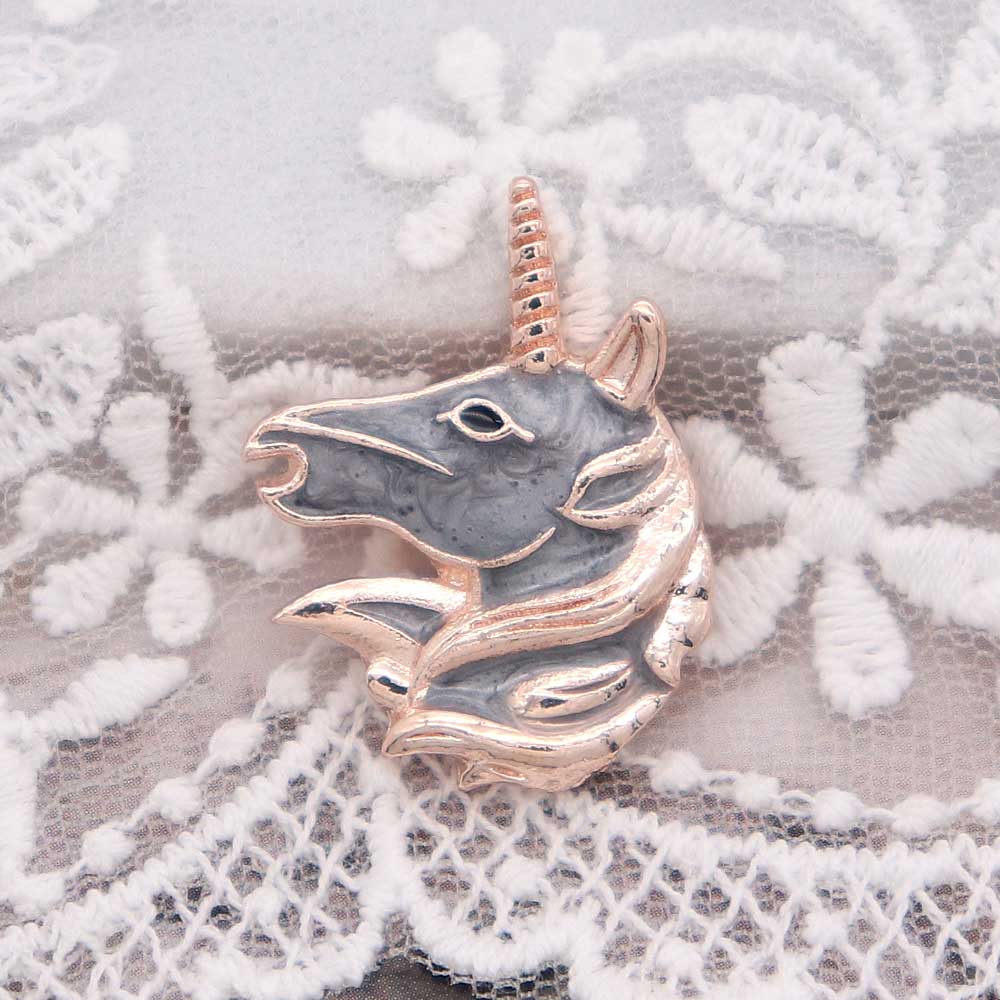 A beautifully detailed unicorn design in antique silver with rose gold accents โ this magical snap captures the spirit of fantasy and wonder in an elegant, timeless style.