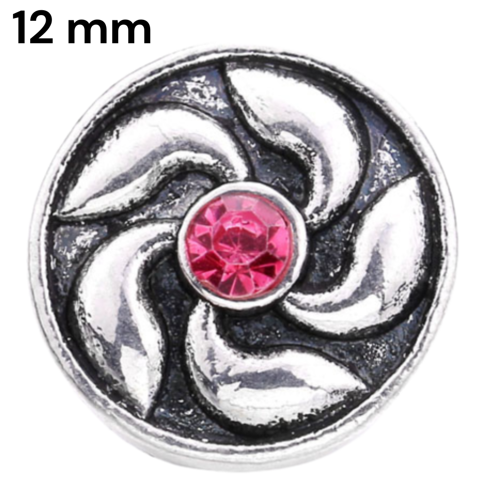 A deep garnet-red crystal is framed with antique-inspired silver beading and dark etching.