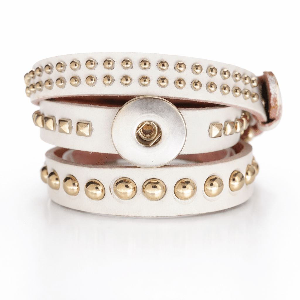 CLEARANCE – White Leather Wrap Bracelet with Gold Studs